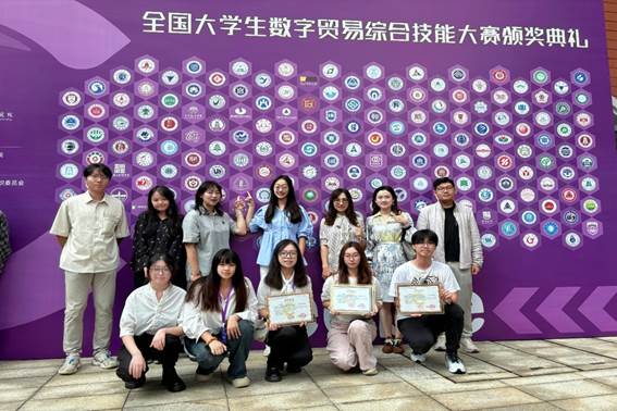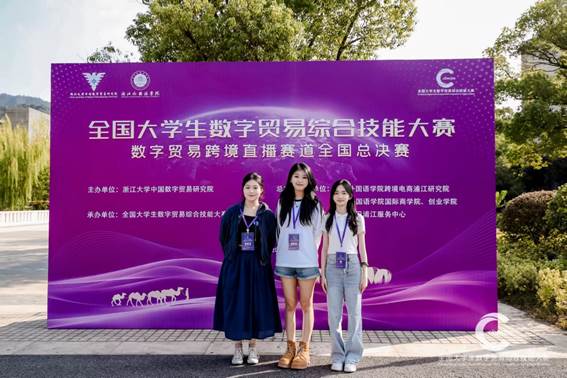 此前,在7月21日,我校作为华东赛区承办院校之一,成功举办第三届全国大学生数字贸易综合技能大赛数字贸易跨境直播赛道区域选拔赛,近40所院校的76支队伍参与。学院从今年3月起开始广泛动员学生组队参赛,经历了赛前培训、线上初赛、区域赛、总决赛等多个环节,最终有10支队伍在华东赛区区域赛中获得佳绩,3支队伍晋级全国总决赛。在全国总决赛期间,参赛队伍还受邀参加了由浙江省人民政府和商务部联合主办的第三届全球数字贸易博览会,使同学们获得了接触和学习最新数字贸易技术与成果的宝贵机会,加深了他们对数字经济和数字贸易重要性的认识,拓宽了他们的行业视野,提高了同学们对商科专业的热爱和学习热情。
