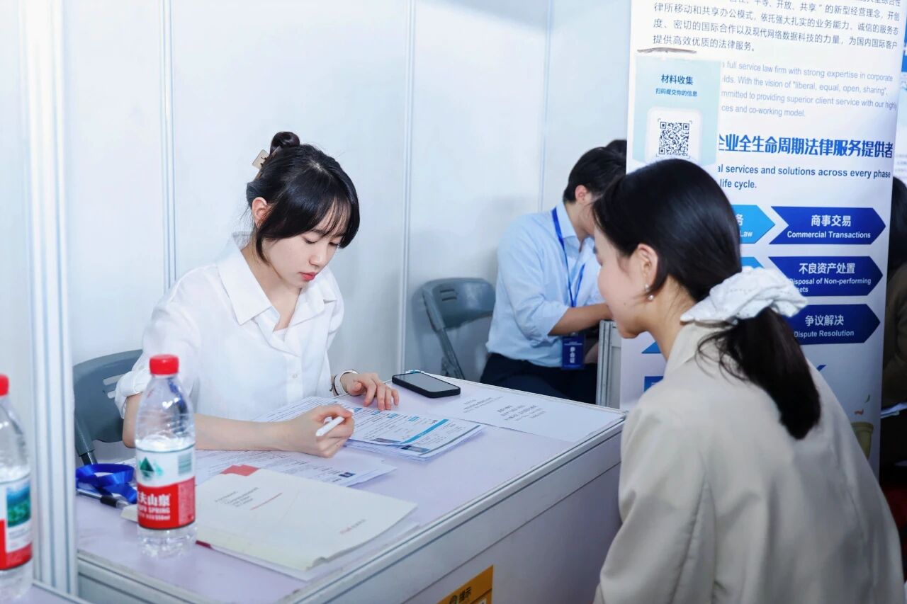 招聘会上,长宁人力资源和社会保障局组团专区“首次亮相”,聚焦区域优质就业资源,强化本地就业对接。新增设的专业服务专区与考公咨询和法考咨询展位相搭配,“携手”满足学生各类发展需求。参与招聘会的企业来自法律、金融、教育等多个领域,并按照行业标签在A-G七个区域内分别设置招聘点。