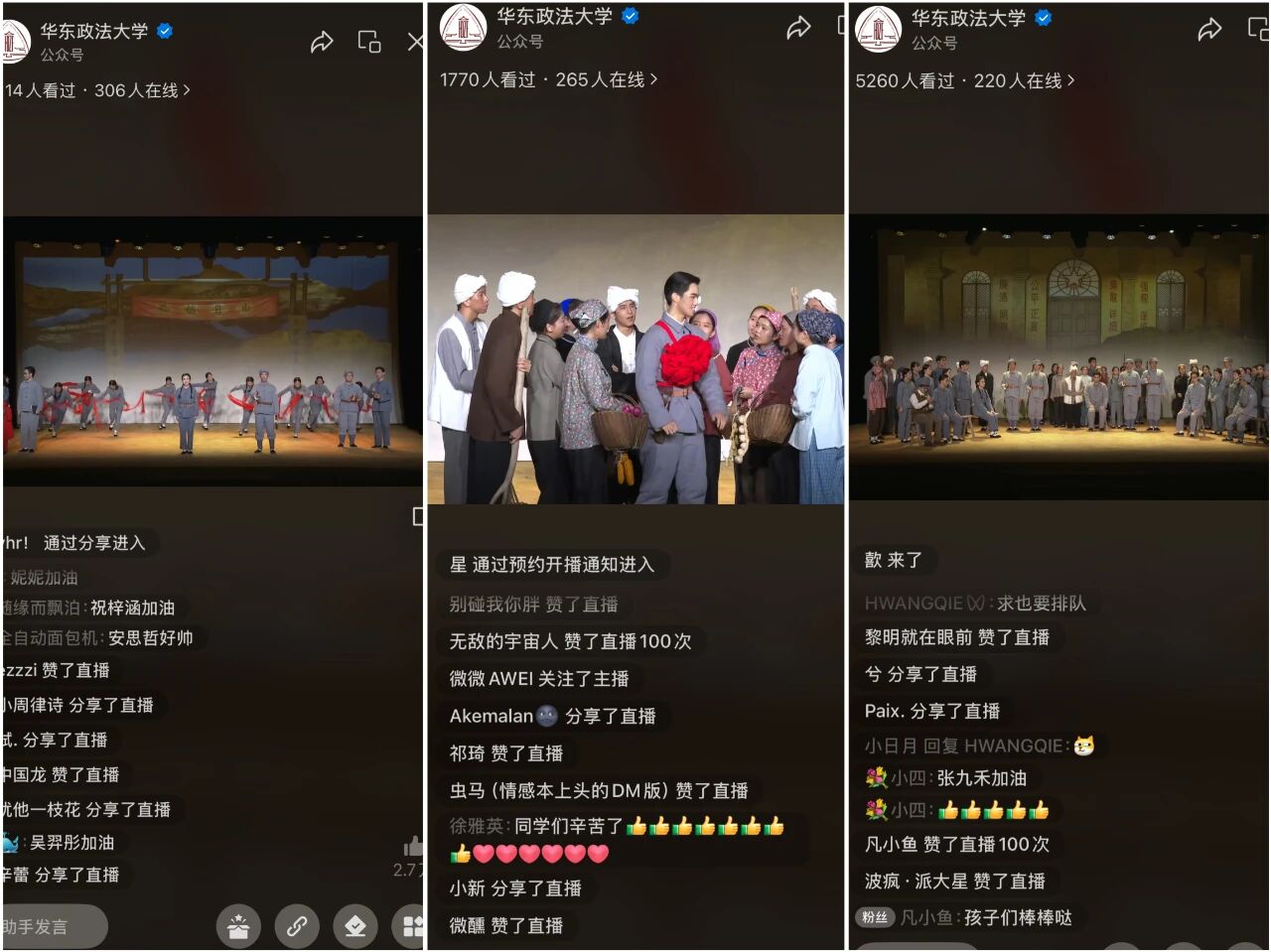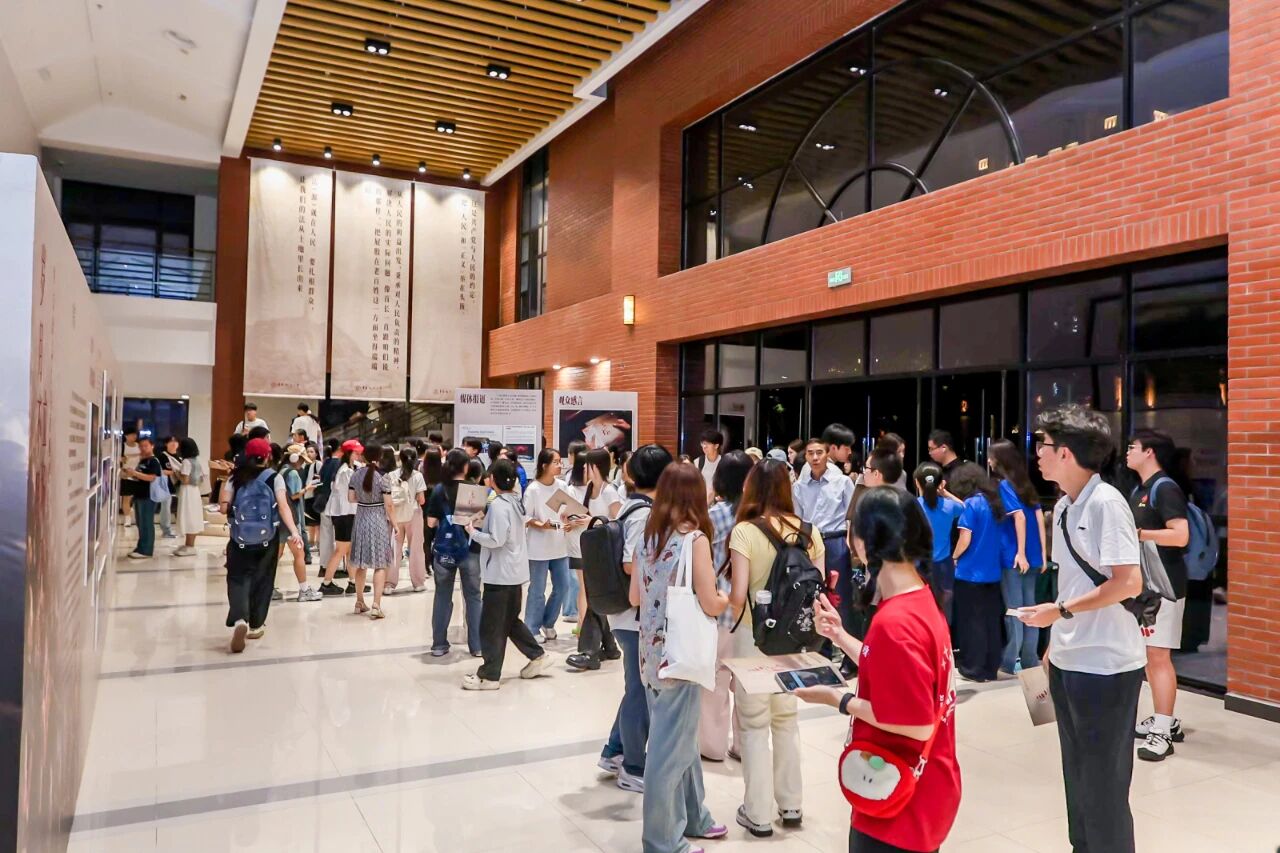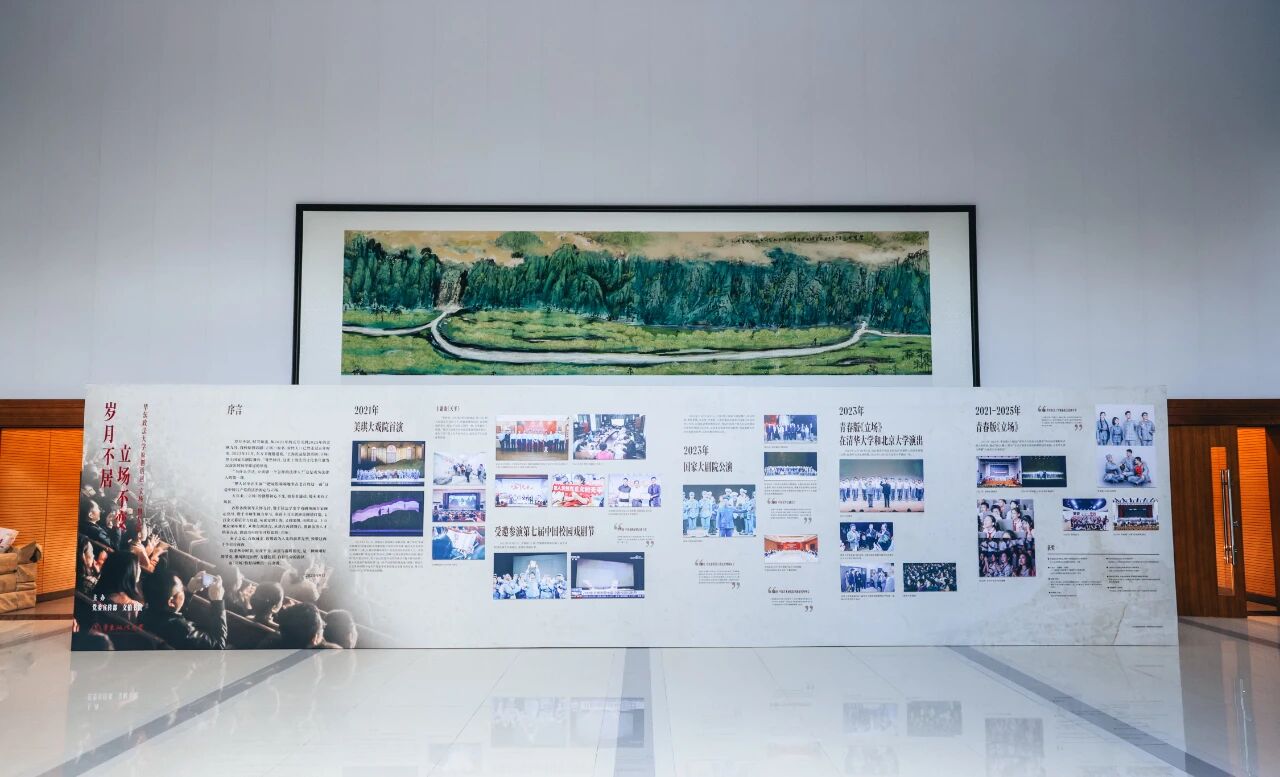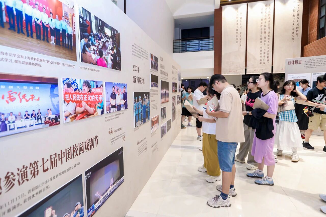 演出同步通过学校官方视频号进行直播,累计6千人次观看。同时,《岁月不居 立场不变——华东政法大学原创话剧<立场>图片展》在缘法厅大厅进行首展,回望法治人才培育初心。