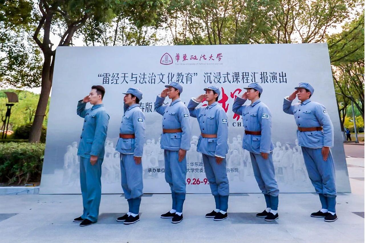 2021年5月我校原创话剧《雷经天》在上海美琪大戏院首演,以新民主主义革命时期“黄克功案”为原型,通过雷经天的法治实践,展现中国共产党人“法不徇私”的红色法治精神。