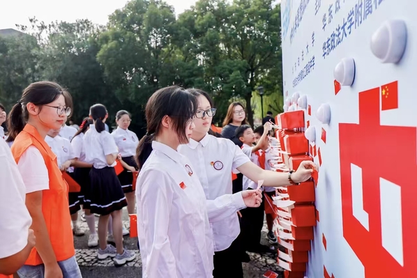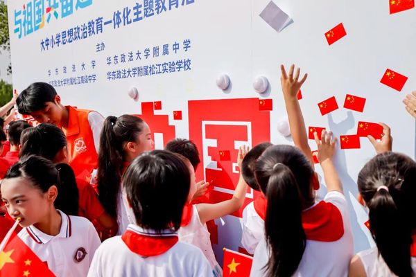 飘扬的国旗、动人的故事、真挚的誓言,共同勾勒出大中小学思政一体化育人的生动图景。作为上海市首批“大思政课”重点试验高校,我校将继续深耕思政教育沃土,以更多元的形式、更优质的资源,引领广大青少年在爱国情怀中坚定信念,在法治滋养中成长成才,用青春之力托举中国式现代化的美好未来。