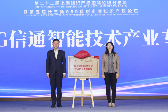 余晨为国家级“海外知识产权纠纷应对指导松江分中心”揭牌。顾惠蓉和陆峰共同为“松江区6G信通智能技术产业专利联盟”揭牌,联盟首批成员单位获授牌,并共同签署专利联盟建设倡议书。上海图书馆(上海科学技术情报研究所)咨询研究中心技术情报部主任路炜发布《松江区高端仪器仪表产业规划专利导航研究成果》。