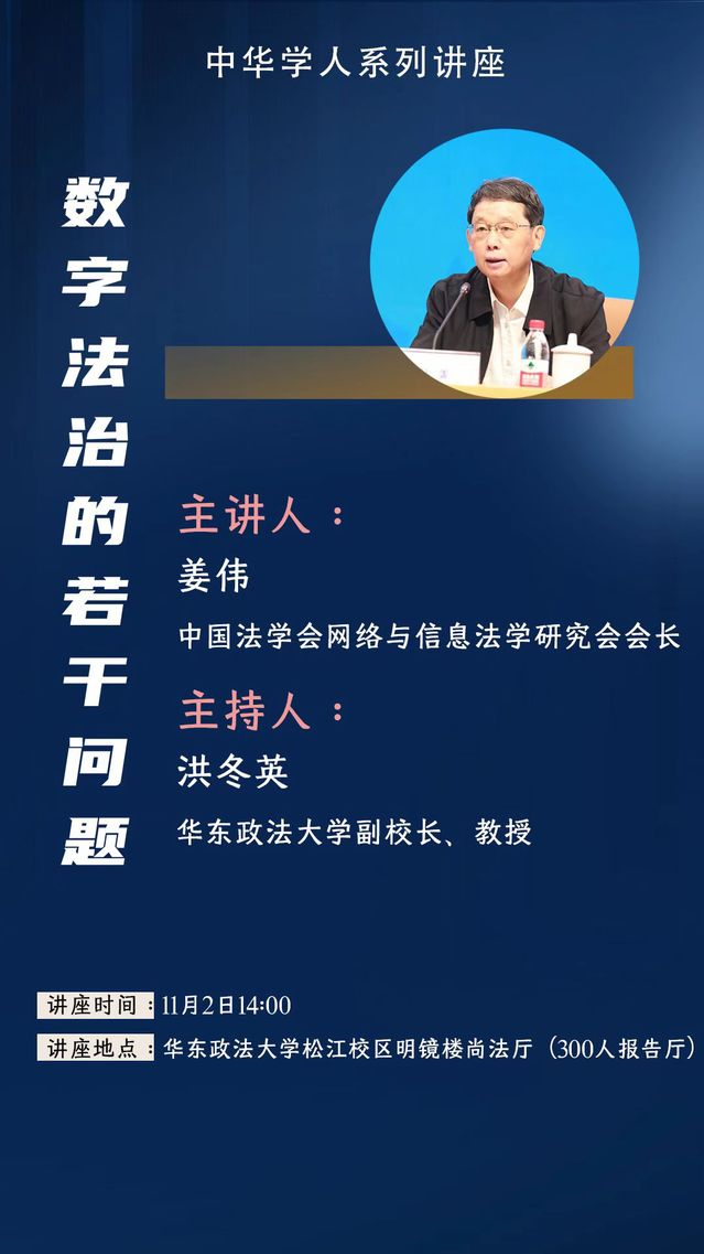 讲座地点:华东政法大学松江校区明镜楼尚法厅(300人报告厅)