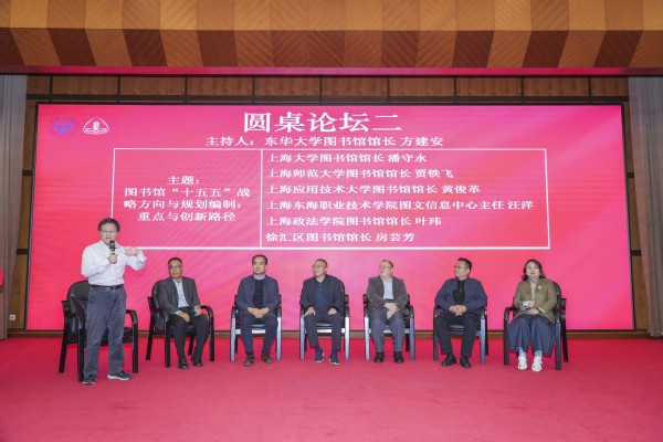 论坛一以“AI驱动下智慧图书馆建设的机遇与挑战”为主题,由东华大学图书馆信息化负责人、资源与平台建设部主任骆永成主持。上海电机学院、闵行区图书馆、同济大学、上海外国语大学、华东理工大学、华东政法大学等高校围绕AIGC的应用边界、数据治理瓶颈展开讨论,在馆员能力提升与跨部门协作是落地关键这一点形成共识。论坛二聚焦“图书馆‘十五五’战略方向与规划编制”,东华大学图书馆馆长方建安与上海大学、上海应用技术大学、中国科学院上海生命科学图书馆、上海东海职业技术学院、上海政法学院、徐汇区图书馆等共议创新路径。嘉宾们提出,规划需突出数据驱动、开放生态构建,并加强馆际资源共建共享,以应对科研范式变革带来的新需求。
