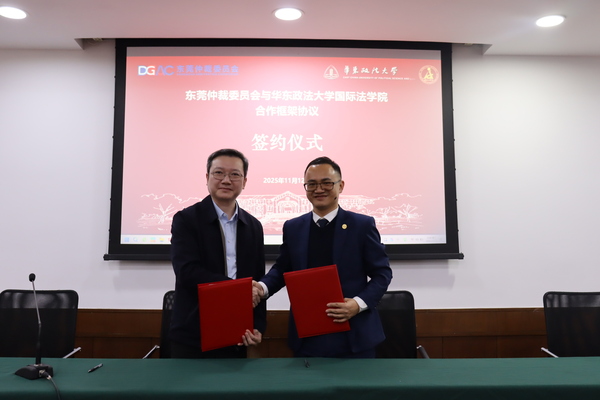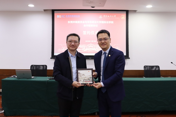 11月12日,我校国际法学院与东莞仲裁委员会在长宁校区签署全面《合作协议》。签署仪式由学校办公室副处长王美丽主持,国际法学院副院长许凯教授与东莞仲裁委员会副主任郑水强完成签约。