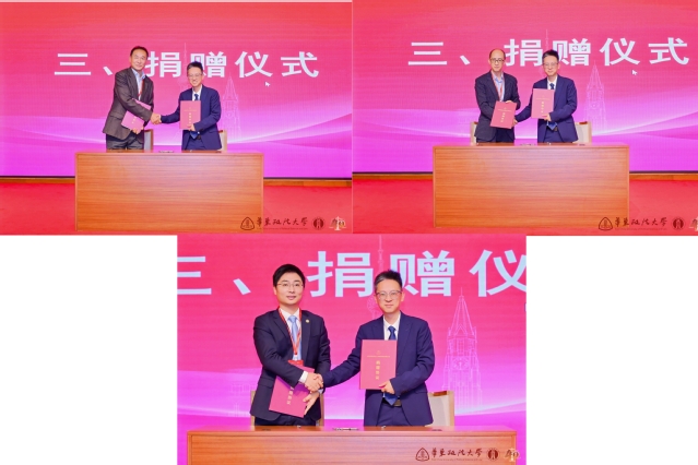 学院党委副书记鲁凤主持大会的捐赠环节。虞潇浩代表学校与经济法系8807班、上海微律歌法盟企业服务有限公司、浙江金道律师事务所签署捐赠协议,并代表学校接受捐赠支票、颁发捐赠证书、赠送纪念盘。