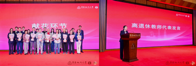 四十年砥砺奋进,离不开老一辈教师的开拓与坚守,大会特设致敬环节,由学院青年教师为老师们献上鲜花,寓意学院四十年积累的宝贵精神财富代代相传。徐士英作为老教师代表发言,她深情回顾了经济法学科在改革开放浪潮中从创立到不断发展的历程,表示全院教师从建系以来始终以服务国家改革与法治建设为己任,为培养大批杰出法律人才倍感自豪,包括自己在内的老教师们虽已退休,但仍心系学院,祝愿经济法学院未来再创辉煌。