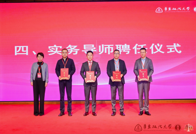 为持续提升学生实务能力,延续学院“双师”制培养的优良传统,大会举办实务导师聘任仪式,聘任20名来自法律实务界的专家担任导师。洪冬英代表学校为来自宁波金融资产股份有限公司、锦天城律师事务所、博和汉商律师事务所、蓝白律师事务所的实务导师代表颁发证书。