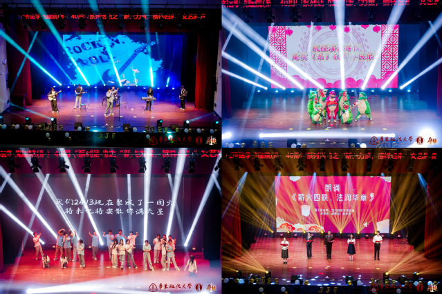 展演在乐队演唱《一万次悲伤》中燃情开场,摇滚旋律唱出青春倔强;2020级校友带来的《群英荟萃》以熟悉旋律和魔性舞步点燃全场笑点;2413班全体同学合唱《Everywhere we go》,诠释了携手共进的青春模样;辅导员周子星与2015级校友李奕涵等人朗诵《薪火四秩,法润华章》,凝聚“明德崇法”的精神内核。歌曲、舞蹈、戏剧等多样节目精彩纷呈,现场欢声笑语不断,尽显师生与校友的活力与情怀。