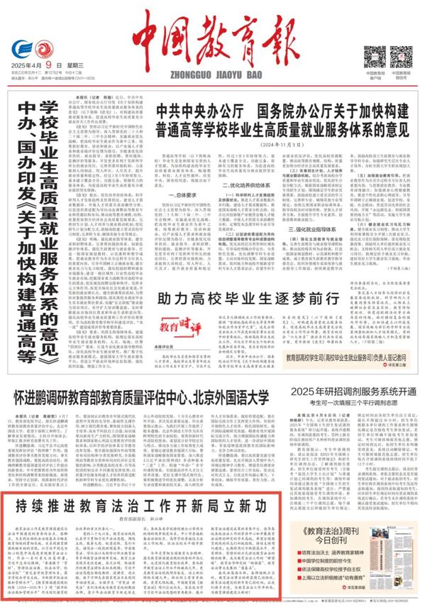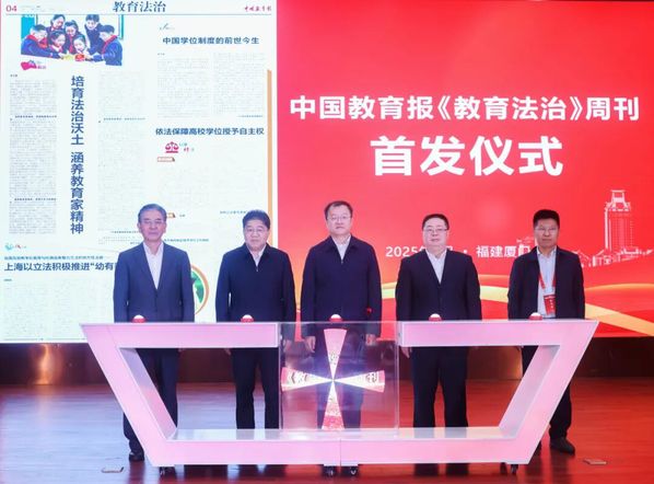 “讲好教育法治故事”是教育法治建设的重要任务,也是教育法学科的重要使命。在话语体系传播上,学校更是迈出关键步伐。2025年4月,联合中国教育报刊社创办的《教育法治》周刊正式创刊,设置理论前沿、以案释法等特色栏目,全方位展现我国教育法治建设成效。4月10日,周刊首发仪式在厦门举行,教育部副部长杜江峰、福建省副省长李兴湖及华政党委书记郭为禄等共同启动周刊,标志着我国教育法治传播增添重要载体。未来,教育法学科还将与国内外中英文学术期刊合作,通过更多途径、在更广阔平台上传播中国教育法治声音,助力构建教育法治话语体系建设。