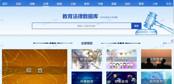 依托科研团队,深度参与国家和地方教育立法工作。包括《学位法》《教师法》《学前教育法》《法治宣传教育法》《国家通用语言文字法》等法律法规起草、修订,以及参与《上海市高等教育促进条例》《上海市教育督导条例》《上海教育督导问责办法》《上海市高校分类评价工作办法》等规章制度研制。深度参与教育部行政复议案件处理等相关工作,深度参与上海市教育政策文件制定,长期为教育领域争议与纠纷解决提供专业咨询。