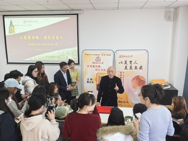陈志宏在明远楼传统书画教室举办了“以笔墨传情 用艺术育人”的专题讲座。