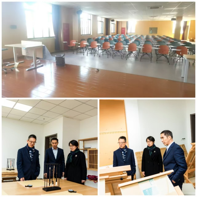 虞潇浩走访指导了明远楼音乐教室、传统与现代书画教室,强调要进一步发挥书画教室的育人功能,鼓励教师团队结合政法专业特色,开发更多融合音乐美学与法治精神的教学内容,让学生在笔墨丹青中传承中华优秀传统文化、感受人文与法治的共鸣。