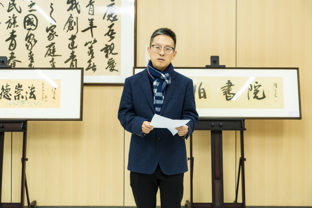 12月3日下午,我校第五届“以美育人 美美与共”艺术教育教学成果展揭幕仪式在明远楼一楼北展厅举行。校党委副书记、副校长虞潇浩,上海市文史研究馆馆员陈志宏,宣传部副部长李馥华,档案馆馆长蒋叶红,教务处质量管理中心主任邢彩霞,文伯书院领导班子及师生代表共同出席活动。