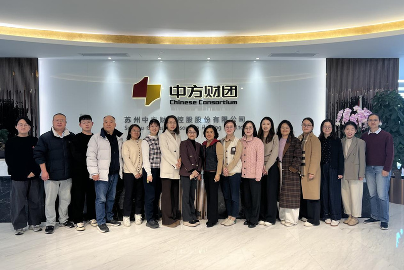在苏州中方财团控股股份有限公司,中方财团财务总监徐浩、总裁办公室副主任沈娟、风控管理部副总经理杨琳、党委办公室副主任葛延钰、中鑫新能源综合管理部高级总监吴春蕾、中方财团党委办公室人事经理薛臻莹、我校校友中方财团法务风控经理叶欣、我校校友中方财团风控管理部主管濮梓闻以及中方财团总裁办公室助管王安琪参与座谈。