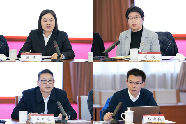 在课程组织与实施环节交流环节,上海市高级人民法院干培处处长张平重点介绍了教学团队的组织架构与运行机制。上海市高级人民法院刑事审判庭庭长周欣、上海市第二中级人民法院刑事审判庭庭长罗开卷、上海市高级人民法院刑事审判庭审判团队负责人赵宇翔作为授课教师代表,分别结合各自授课模块,分享了如何将审判实务经验转化为可教可学的课堂内容。刑事法学院院长孙万怀系统介绍了课程在理论教学内容设计及师资团队建设方面的规划与实践经验。陈邦达、张开骏作为校内教师代表,分享了双师同堂教学模式下的教学组织、集体备课与考核评价机制。刑事法学院本科生代表曹新宇、研究生代表黄磊先后发言,从学生视角分享了课程学习的收获与感悟。新立项的7门双师同堂型课程负责人或教师代表围绕各自课程建设规划进行了汇报交流。教务处副处长杜素娟在会上详细介绍了学校双师同堂实务课程的建设标准与验收规范,明确了课程质量保障的具体要求。