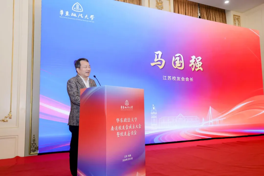 江苏校友会代表马国强、苏州校友会唐海燕先后致辞,对南通校友会的成立表示热烈祝贺,并期待未来加强校友组织互动,共同为长三角一体化发展注入华政智慧与法治力量。