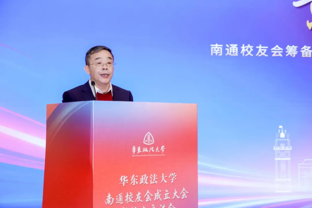 肖凯回顾了我校与南通深厚的历史渊源。他向与会校友介绍了学校近期在校区建设、学科发展与国际化等方面取得的进展,以及学校在综合改革和服务上海五个中心建设等方面的积极举措。他指出,学校确立了人才培养的三个重点领域,即涉外法治、服务高质量市场经济和超大型城市社会治理,积极推进以实践为导向的法学教育培养机制改革,并致力于打造一个法科为主、多科融合、中国特色、世界一流的政法大学。同时,他对南通校友会提出四点期待:成为校友与母校的“连心桥”、服务发展的“赋能站”、弘扬华政精神的“旗帜”以及互助共享的“温馨港湾”。
