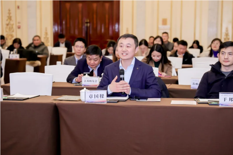 钱玉林在发言中表示,学院的经济法、金融法等学科与南通产业发展高度契合,建议与校友会共同建立“一对一”校友导师机制,搭建优质实习平台,助力学生成长。他强调校友会应聚焦“联谊”与“回馈”,鼓励校友以多种形式支持母校,并坚信南通校友会将有效联结母校与地方。