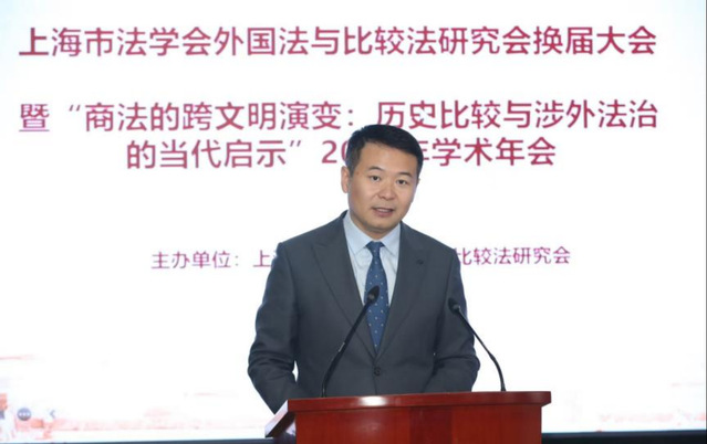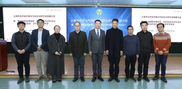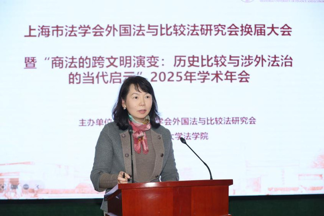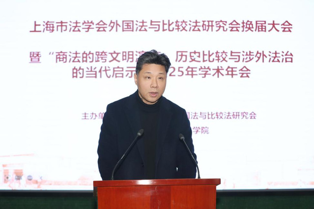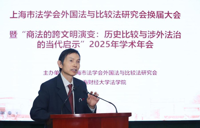 近日,上海市法学会外国法与比较法研究会换届大会暨“商法的跨文明演变:历史比较与涉外法治的当代启示”2025年学术年会在上海财经大学国定路校区行政楼一楼报告厅召开。会议由上海市法学会外国法与比较法研究会和上海财经大学法学院联合主办、我校涉外法治研究院承办。来自我校、复旦大学、上海交通大学、同济大学、武汉大学、华东师范大学、上海财经大学、华东理工大学、上海外国语大学、上海大学、上海师范大学、上海海事大学、上海政法学院、上海社科院、中国计量大学等单位60余名专家学者出席研讨会。