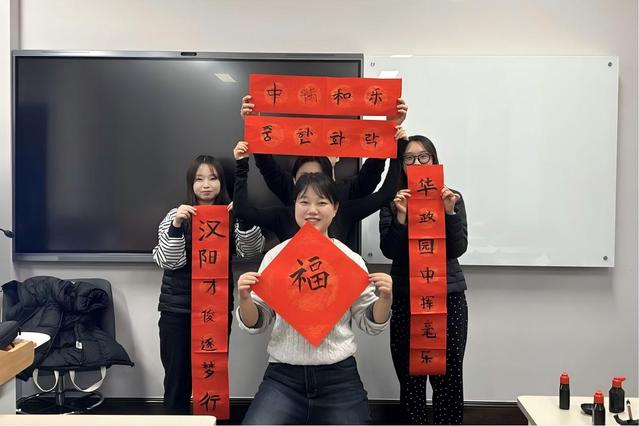 冬令营课程设置围绕语言学习与文化理解两大主线展开,内容丰富、层次清晰。汉语课程根据学员语言水平分为不同层级,重点提升听、说、读、写等综合能力;中国法治文化课程结合学校学科特色,帮助学员了解中国法治发展的基本脉络与现实实践;在中国传统文化体验环节中,学员通过漆扇制作、剪纸等实践活动,近距离感受中华优秀传统文化的魅力。