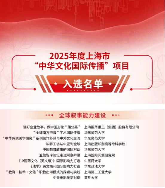 近日,市委外宣办(市政府新闻办)公布2025年度上海市“中华文化国际传播”项目征集活动结果,“《法学》英文期刊国际影响力打造”成功入选该项目“全球叙事能力建设”方向。
