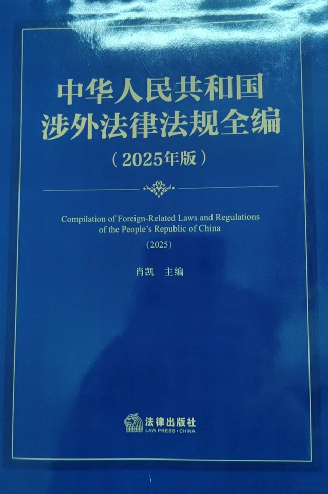 为深入贯彻习近平法治思想,落实统筹推进国内法治和涉外法治要求,服务国家高水平对外开放大局,由我校校长肖凯主编、国际法学院院长杜涛副主编的《中华人民共和国涉外法律法规全编(2025年版)》近日正式出版发行。