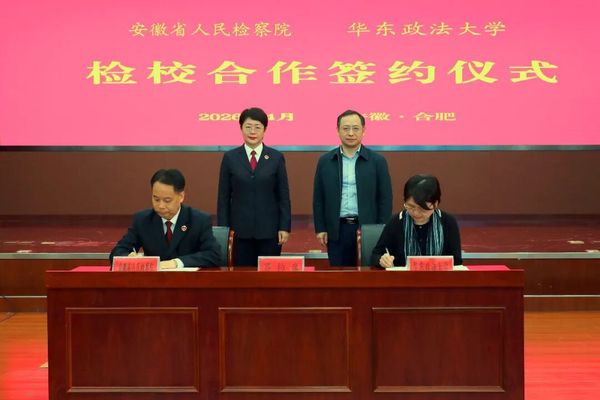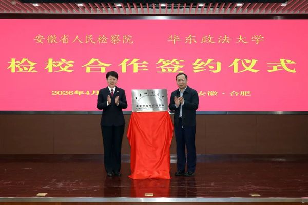 4月1日,我校与安徽省人民检察院检校合作签约仪式在省检察院举行。校党委副书记、校长肖凯,省检察院党组书记、检察长宋文娟共同见证协议签订,并为合作基地揭牌。