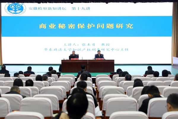 当天下午,根据检校合作安排,我校知识产权学院张本勇教授受邀参加安徽检察新知讲坛,以“商业秘密保护问题研究”为题,为全省三级院检察干警进行专题授课。省检察院党组成员、副检察长鲁建武主持讲座。